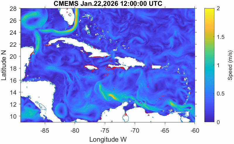 Sargassum trajectories – Diffusion + currents (HYCOM) + windage (NCEP)