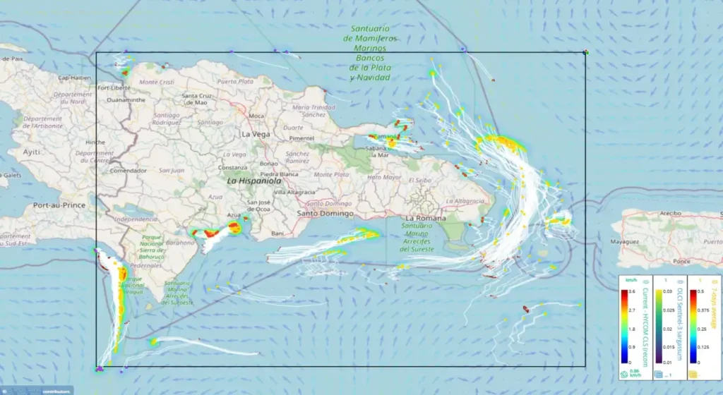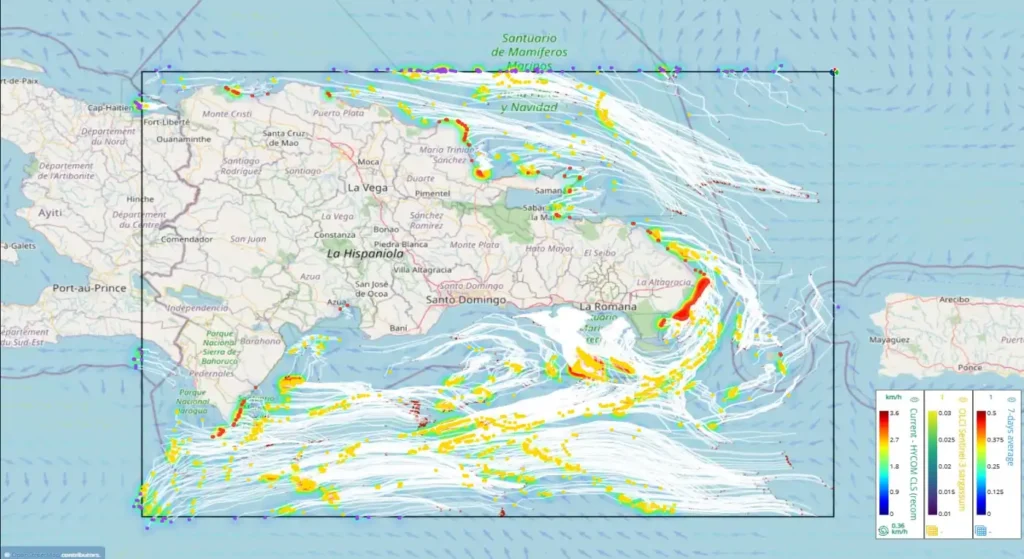 – CLS – SAMtool / Sargassum trajectory forecast, Dominican Republic area.