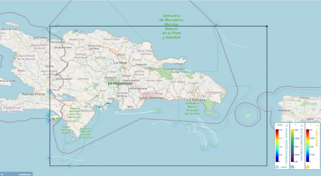 – CLS – SAMtool / Sargassum trajectory forecast, Dominican Republic area.