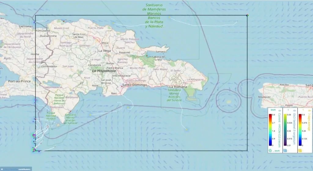 - CLS – SAMtool / Pronóstico de la trayectoria del sargazo, área de República Dominicana