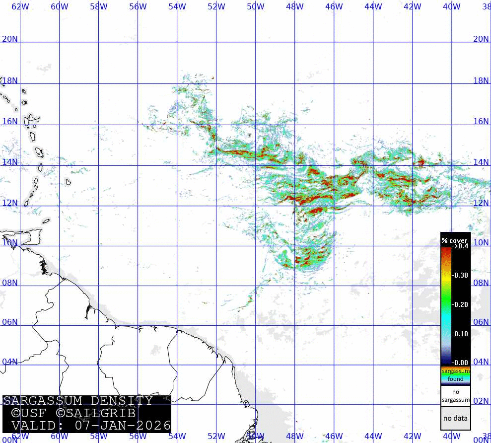 Carte des sargasses - Mer des Caraïbes