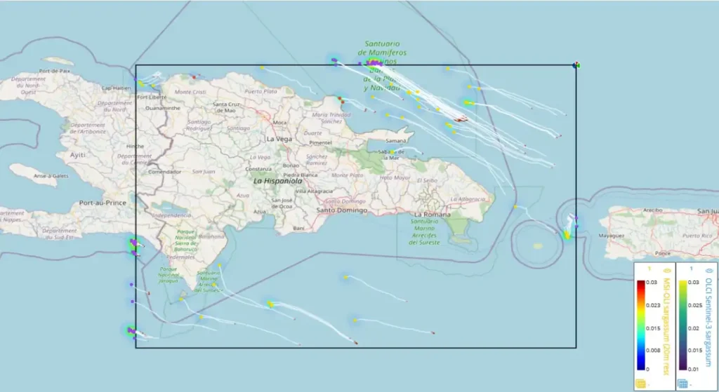- CLS - SAMtool / Prévision de trajectoire Sargassum, zone République Dominicaine.
